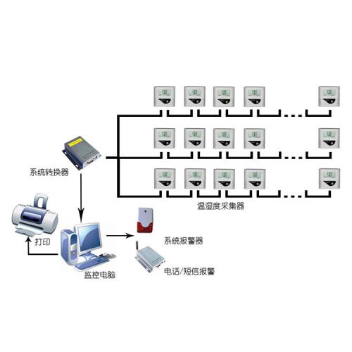 系統基于傳感技術、網絡技術、信息管理技術、通信技術等先進技術為主體,按照分布式原則設計,以全數字信號進行傳輸,提高了系統的可靠性和可維護性。首先對單個或距離相近的數個監控點位進行溫濕度數據檢測管理,然后通過RS485總線傳輸到數據轉換器。數據轉換器將輸入的溫濕度數據RS485信號轉換成RS232信號,通過RS232接口與電腦端的232九針接口連接,將數字數據傳輸到監控主機。通過我們的專用溫濕度監測軟件接收、顯示、分析、監測,從而達到實時監控被測點位的溫濕度環境變化。